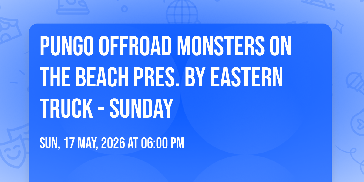 π Location: 36.8338, -75.9711β¨ Discover the extraordinary at Pungo Offroad Monsters on the Beach pres. by Eastern Truck - SUNDAY, where magic meets reality in ways you've never imagined! ποΈ Set in 5th Street Beach Stage nestled in bustling Virginia Beach, VA, this event promises to be a landmark occasion. π Taking place on May 17th, 2026 at 06:00 PM, it's going to create an atmosphere where every moment becomes a cherished memory. π Immerse yourself in an experience crafted with attention to every detail, designed to surprise and delight at every turn. They have worked tirelessly to ensure this event exceeds all expectations, bringing together elements of entertainment, innovation, and pure joy. π Don't miss your chance to be part of this remarkable journey!