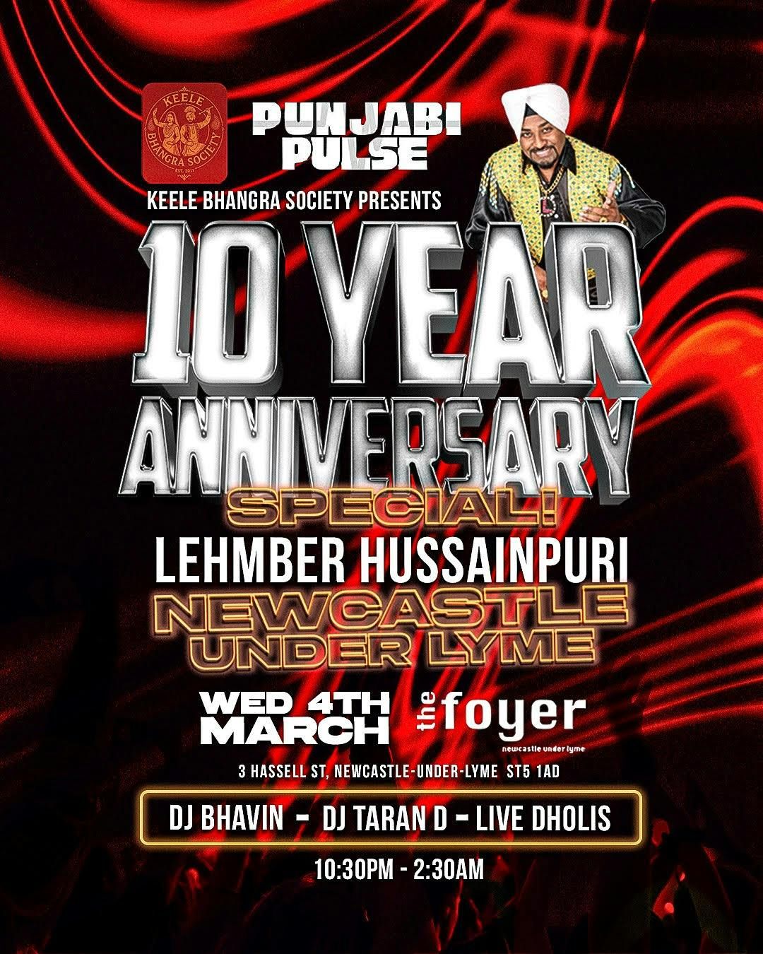 We Are Back Punjabi Pulse Presents Punjabi Pulse x Keele Bhangra For Their 10 Year Anniversary Special With A Special Guest Lehmber Hussainpuri 🎤🔥Lehmber Hussainpuri Performing All Of His Best Hits, Including Iconic Bangers Such As + Das Ja, Je Jatt Bigr Gaya, Chalakiyaan, Sadi Gali + MORE 🎵