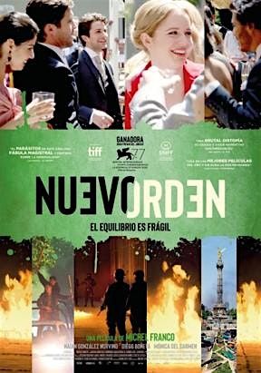 En México D.F. se celebra una fastuosa boda de alta alcurnia mientras en las calles cercanas se viven violentas protestas con el foco en la lucha de clases, derivando la tensa situación en un cruento golpe de estado. Vista a través de los ojos de la joven novia del enlace y de los sirvientes que trabajan para su pudiente familia, 'Nuevo orden' sigue las huellas del derrumbe de un sistema político y del nacimiento de un desgarrador nuevo reemplazo.