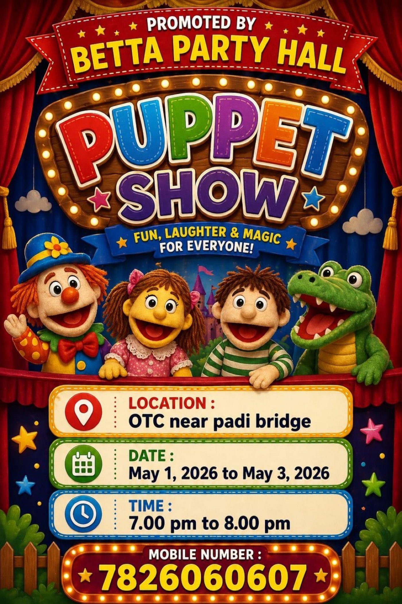 PUPPET SHOW - 7 PM to 8PM on May 1, 2026 - May 03, 2026 in OTC near Padi Bridge by Marlen Mahal