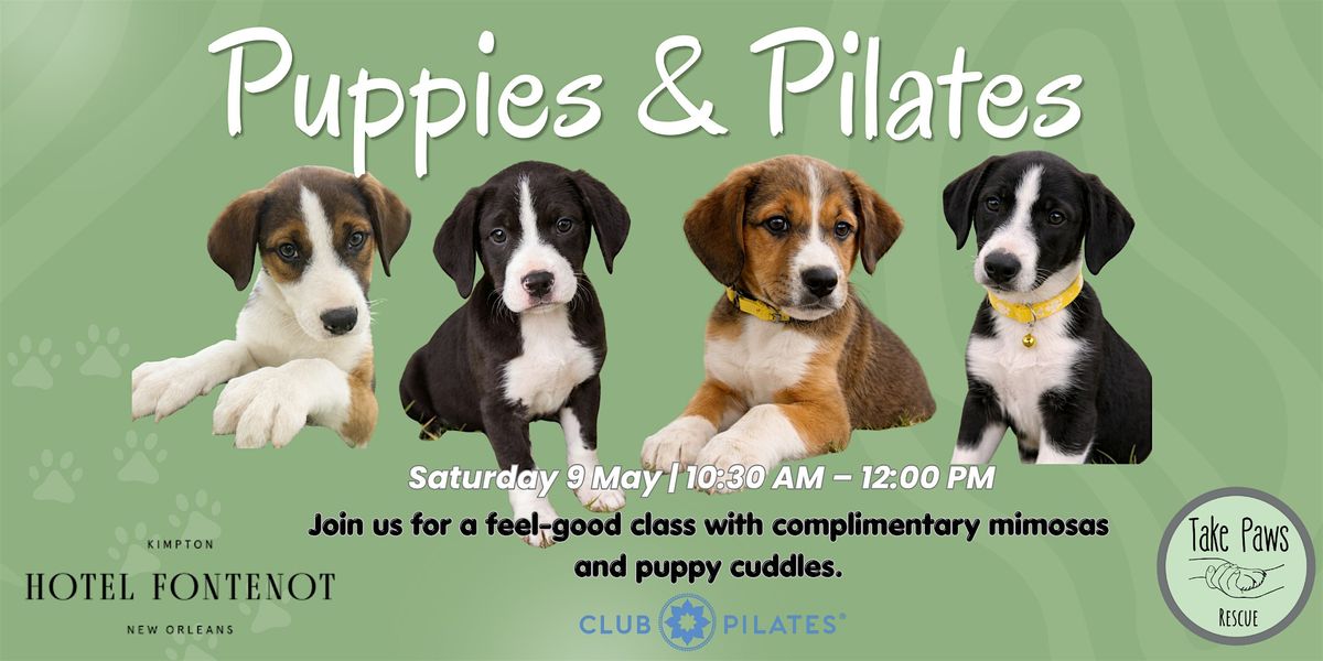 Join us on May 9th for a one-of-a-kind Puppies & Pilates experience at Hotel Fontenot in collaboration with Take Paws Rescue š¾