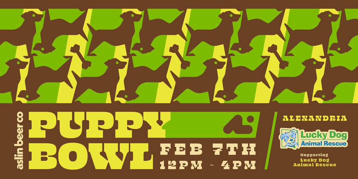 Aslin is hosting the puppy bowl, Saturday, February 7 from 12pm - 4pm. It’s the superbowl pregame where everyone’s a good boy!
