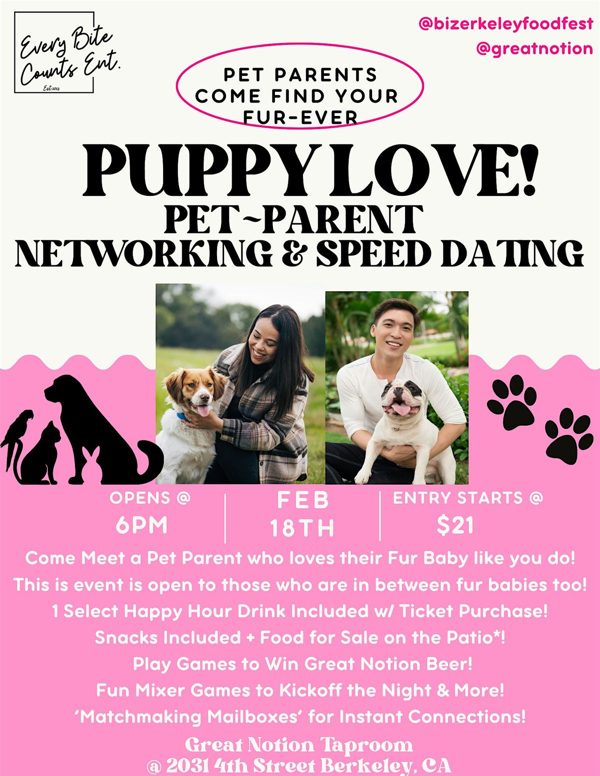 We are so excited for you to join us at our Puppy Love themed Speed Dating/Meeting/Networking Event!