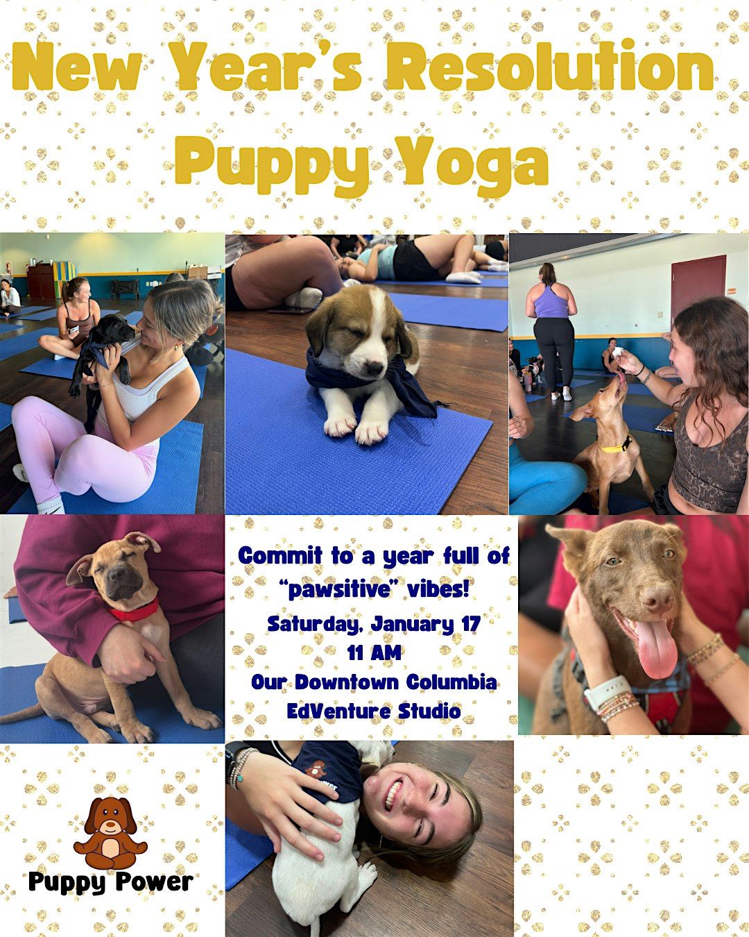 Come get your year off to a great start with some Puppy Power puppy yoga!