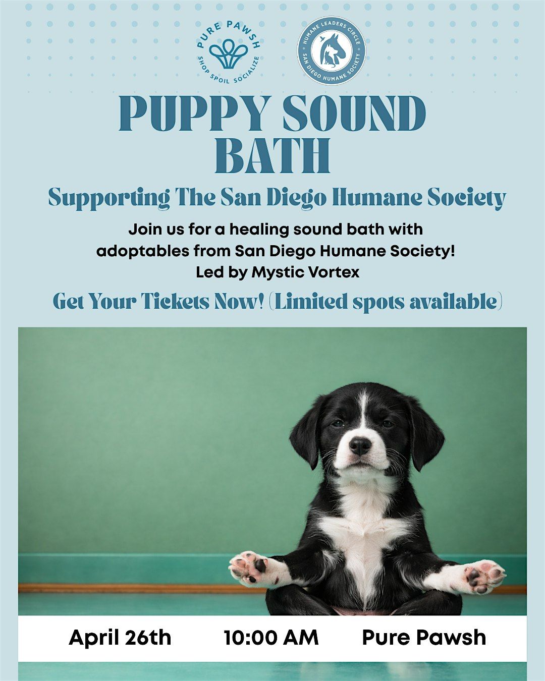 Join us at Pure Pawsh on April 26th at 10:00AM for a Puppy Sound Bath!
