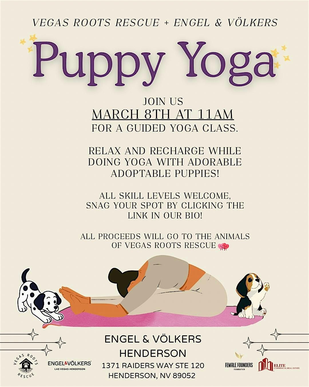 Looking for a fun way to relax and get your daily stretch? Come to our Puppy Yoga session! Enjoy gentle yoga moves while adorable puppies roam around and play with you. It's the perfect combo of calm and cuteness that'll brighten your day. Don’t miss out on this fun class that supports our mission.