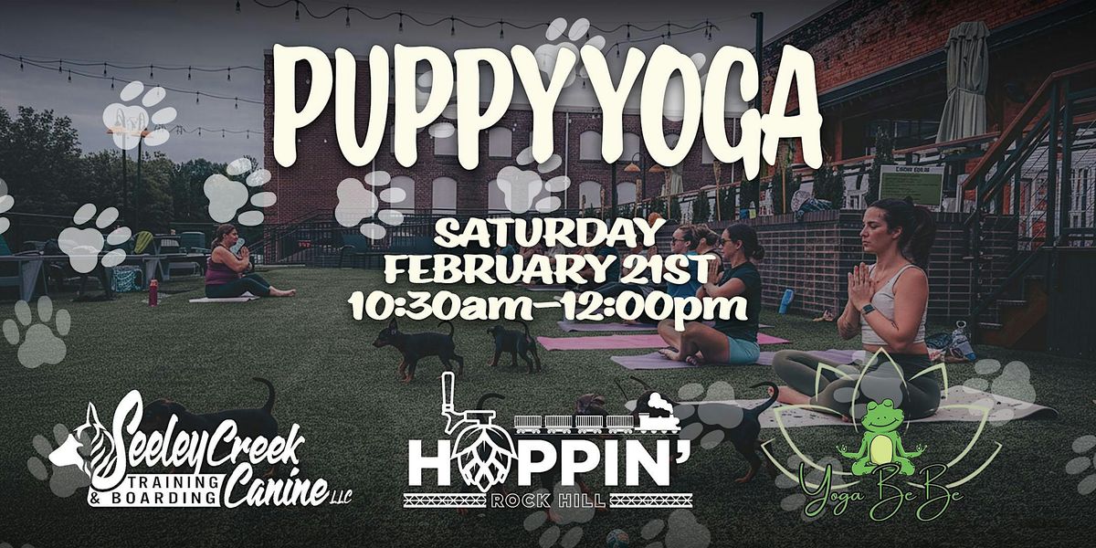 Join us at Hoppin' RH on January 31st for a Puppy Yoga Workshop for Stress Relief, led by Yoga Bebe and featuring adorable Doberman puppies from Seeley Creek Canine.