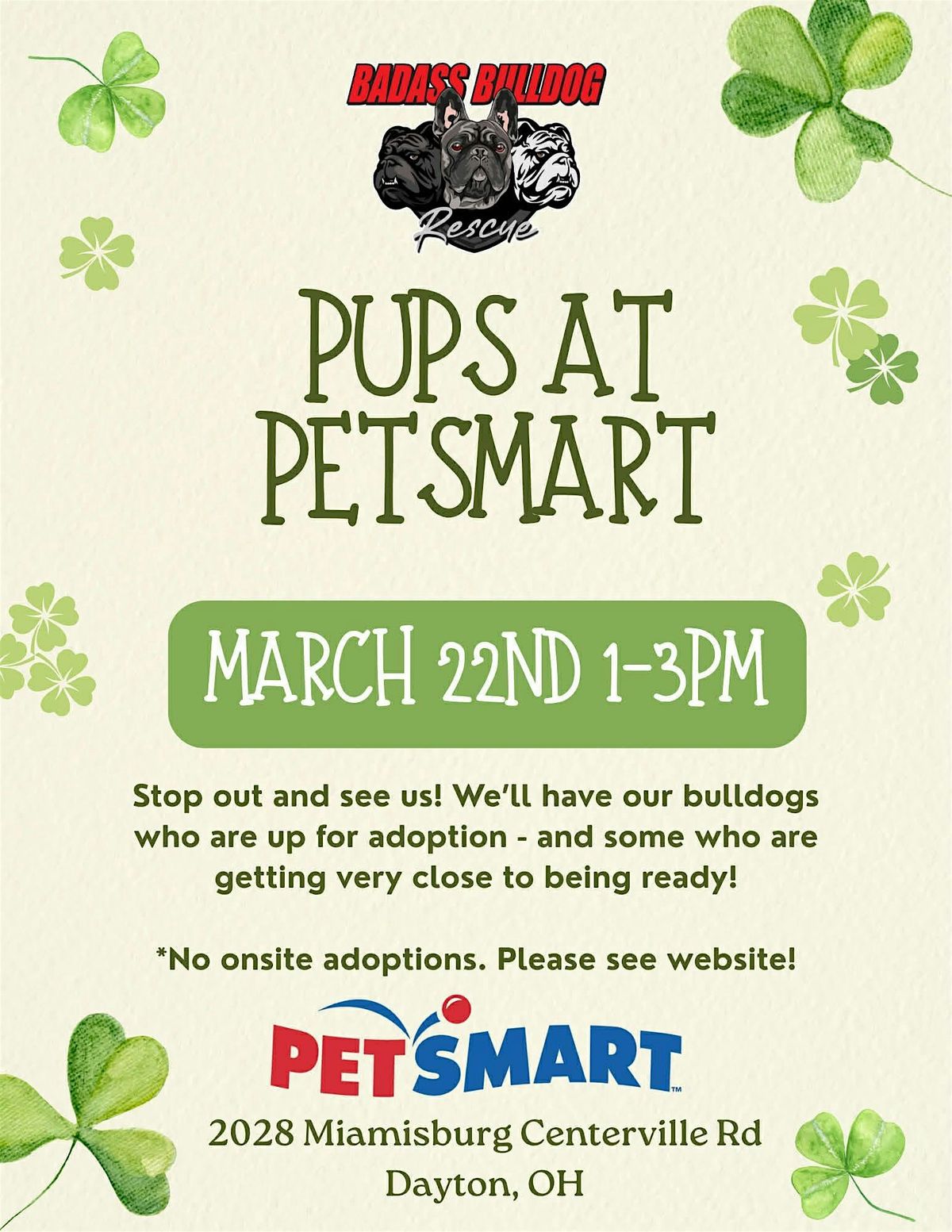 Come out to Petsmart on March 22nd from 1pm - 3 pm & get you some bulldog love!