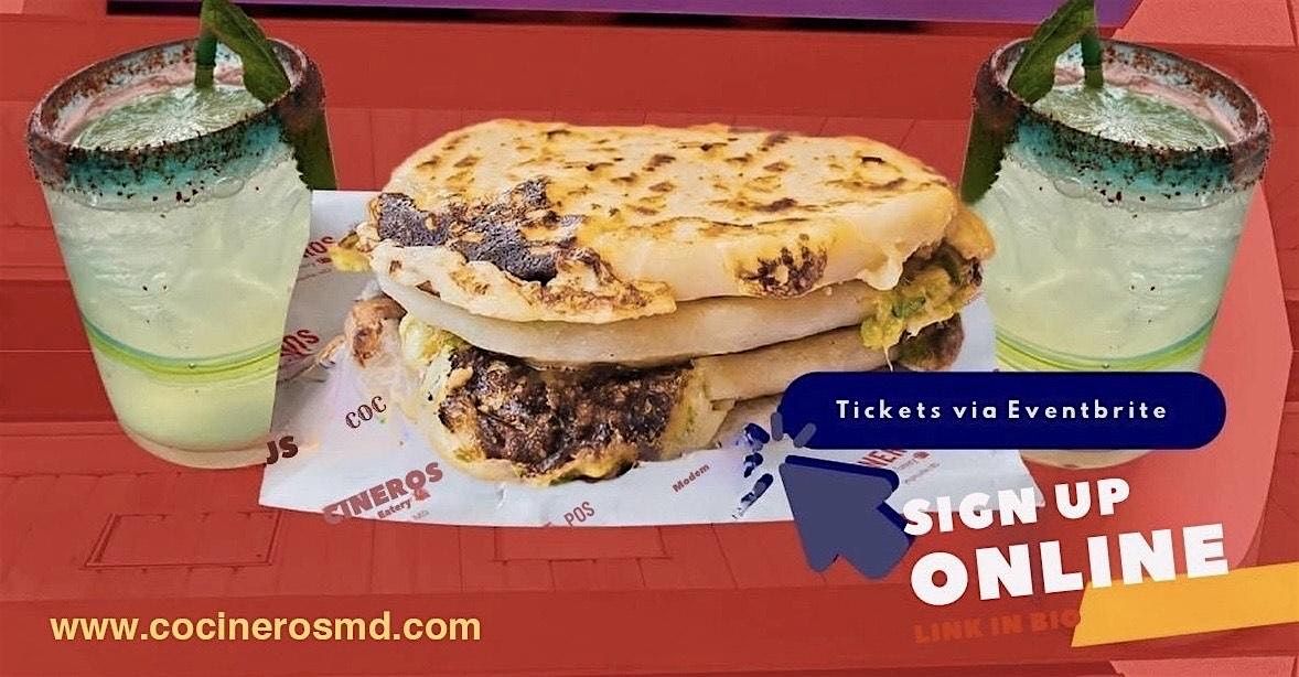 Join a hands-on pupusa cooking class at Cocineros led by Chef Carlos Alvarado. Each ticket includes pupusas made and enjoyed during the session, plus one included drink, choose one cocktail or one non-alcoholic option. No cooking experience is required.