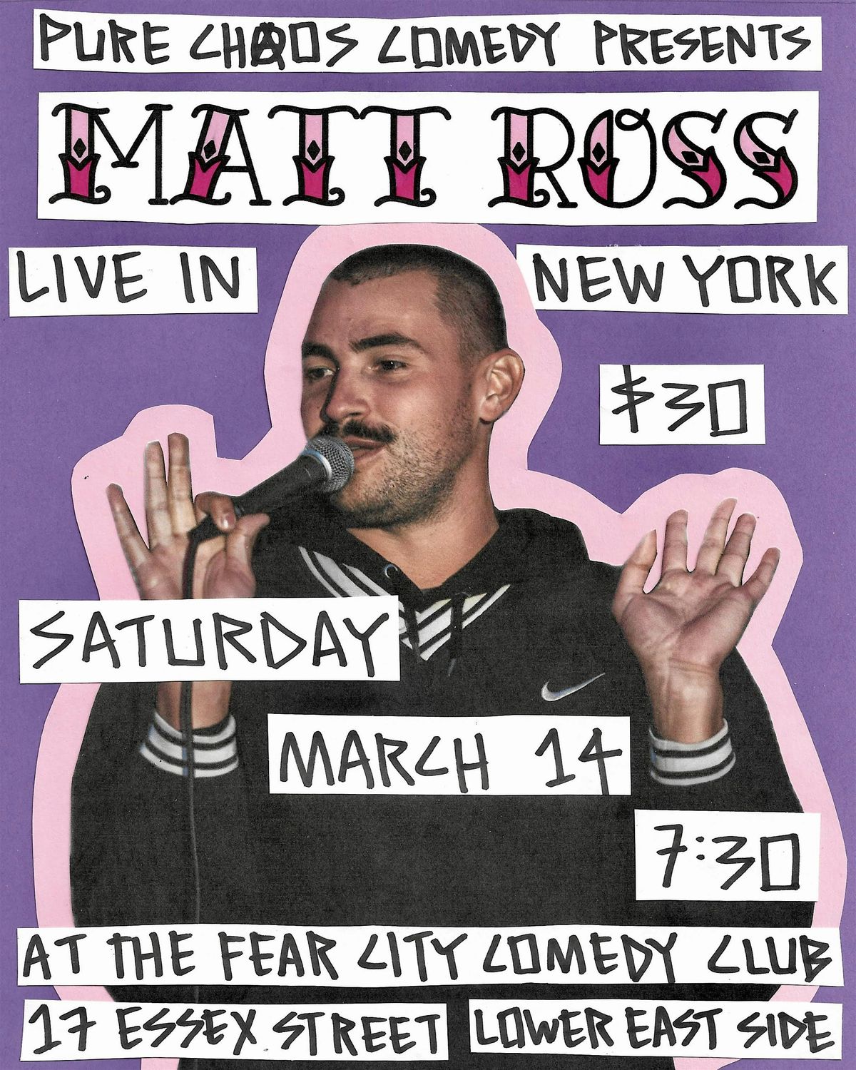 Pure Chaos Comedy presents MATT ROSS live in New York City at the Fear City Comedy Club in the Lower East Side!
