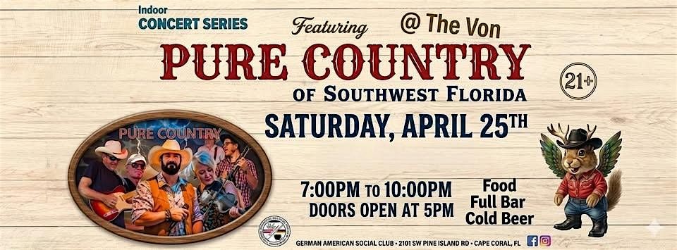 Experience PURE COUNTRY in concert at The Von, hosted by the German American Social Club on Saturday, April 25th. 21+ event.