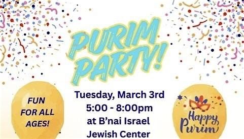 Join us for our annual Purim Party with a lively reading of Esther in English, followed by dinner! Costumes encouraged! All ages welcome!About this Event