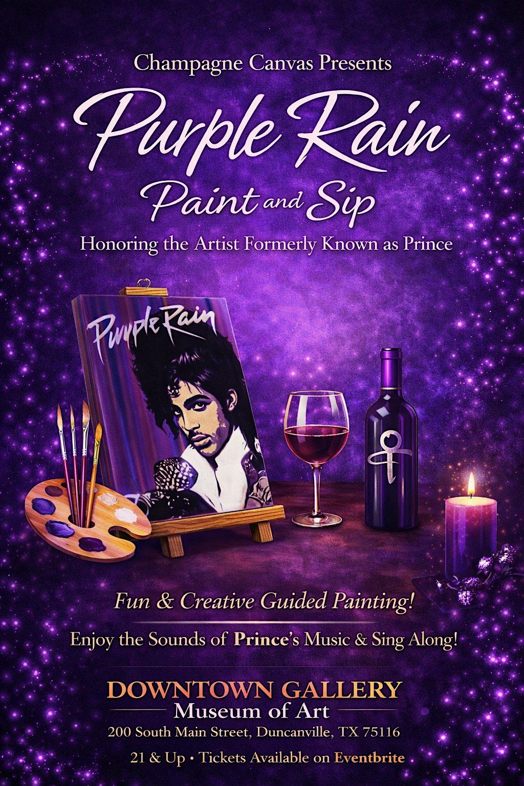 Get ready to sip, paint, and vibe with purple rain inspiration at our fun in-person paint & sip night!About this Event