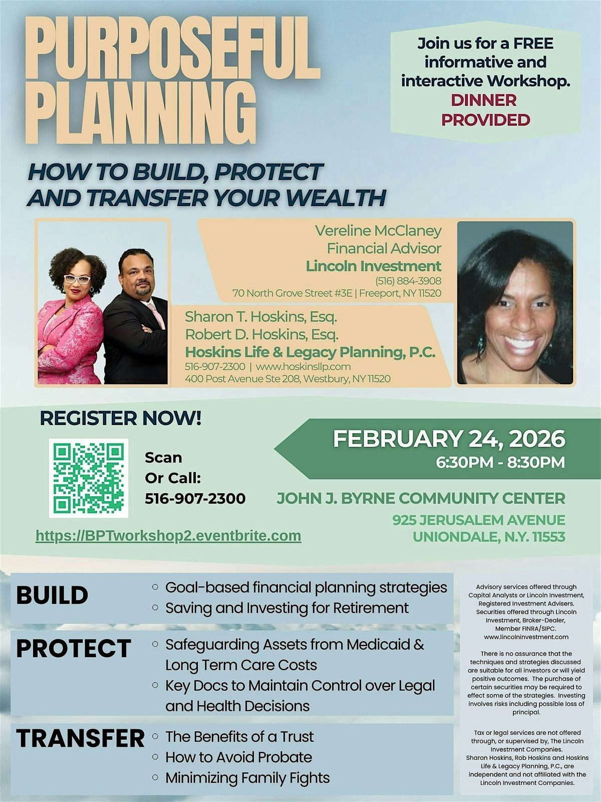Join us for an informative event on how to effectively manage your wealth! Learn valuable strategies on building, protecting, and transferring your assets.