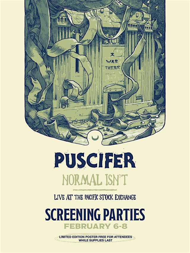 See Puscifer's new concert film "Normal Isn't Live At The Pacific Stock Exchange" surrounded by other fans right here in the shop.