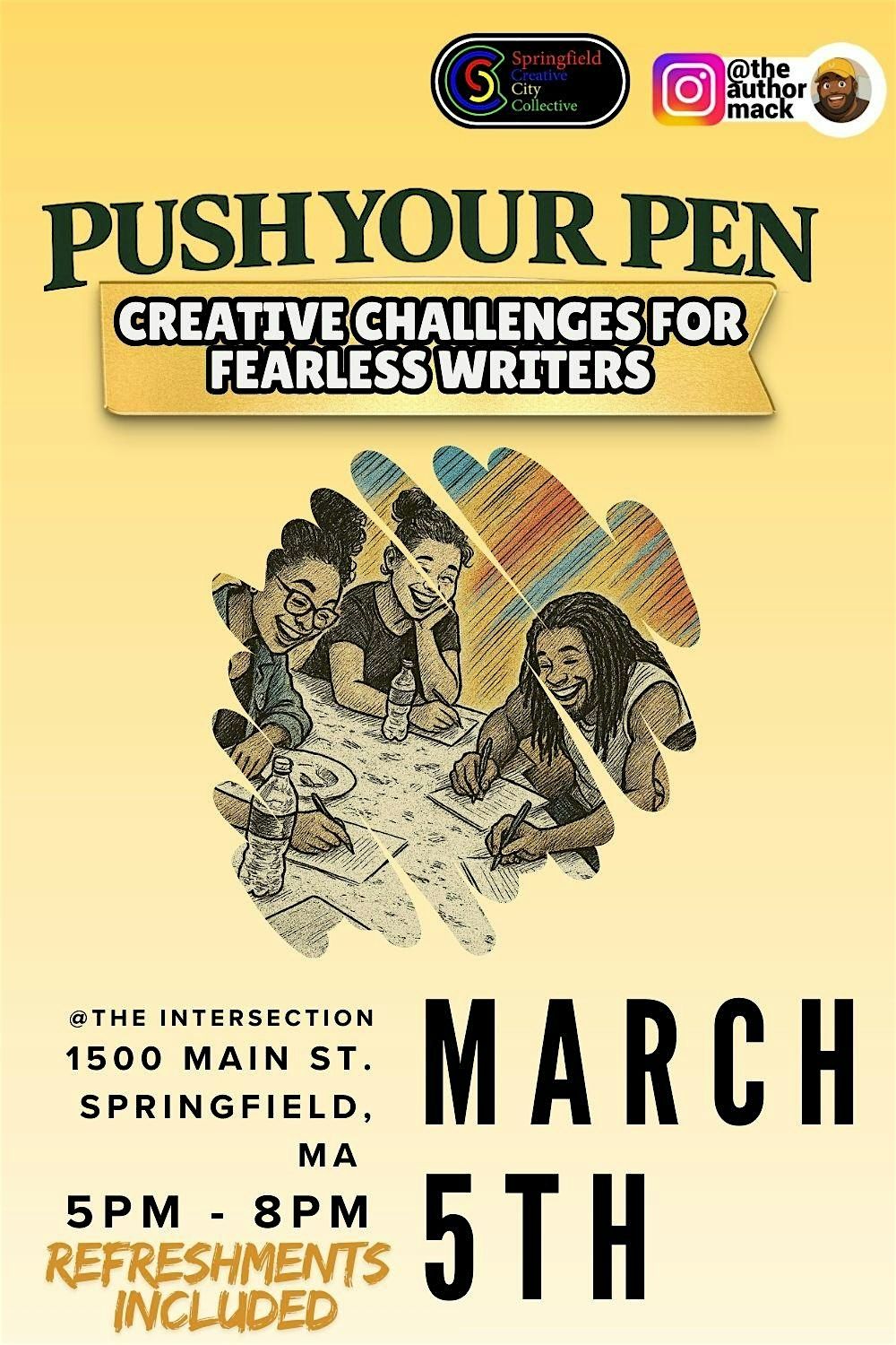 Push Your Pen: Creative Challenges for Fearless Writers is a high-energy writing experience designed to stretch your creativity, disrupt your habits, and unlock new ways of thinking on the page.
