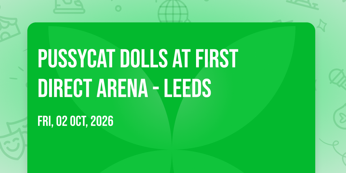 ✨ Experience the magic of Pussycat Dolls at First Direct Arena - Leeds, where moments become memories that last a lifetime! 🏛️ The iconic First Direct Arena - Leeds in Leeds, EN sets the perfect stage for an unforgettable celebration on October 2nd, 2026 at 06:00 PM. 🌟 It's been a curated experience that brings together the best of entertainment and innovation, creating an atmosphere of wonder and excitement. From the moment you arrive, you'll be immersed in a world where the ordinary transforms into the extraordinary. 🎊 Book early to secure your place in what promises to be an event that will be talked about for years to come!