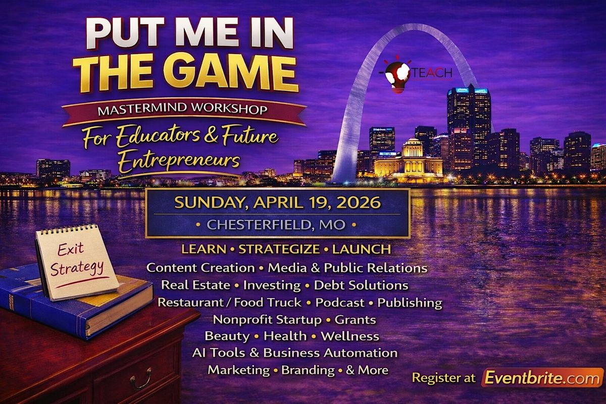 Put Me In The Game (PMITG) is a hands-on workshop designed to help educators and aspiring entrepreneurs turn their knowledge, skills, and life experience into sustainable income streams and business opportunities.