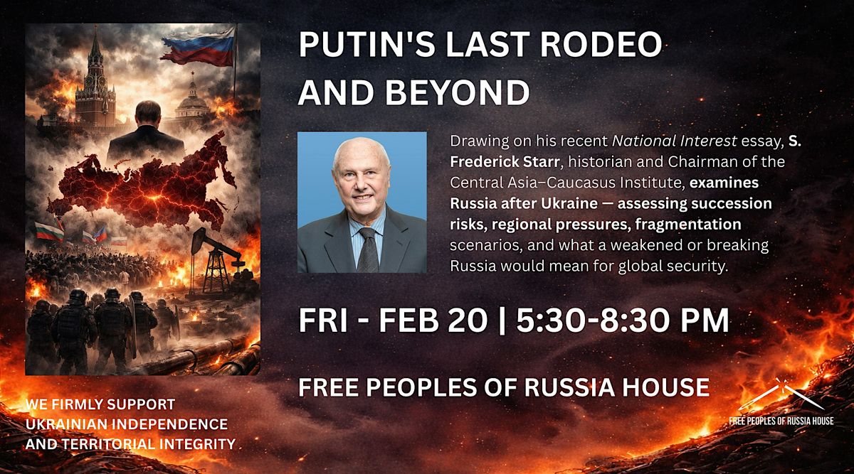 The discussion will explore a range of possible outcomes, including managed succession, prolonged authoritarian rule, increased regional autonomy, and scenarios in which the Russian state begins to fragment. Starr also considers what internal instability or partial breakup would mean for Russia’s neighbors, global energy markets, nuclear security, and Western policy planning. The event offers a sober, forward-looking assessment of Russia’s future and why it matters well beyond Russia’s borders.