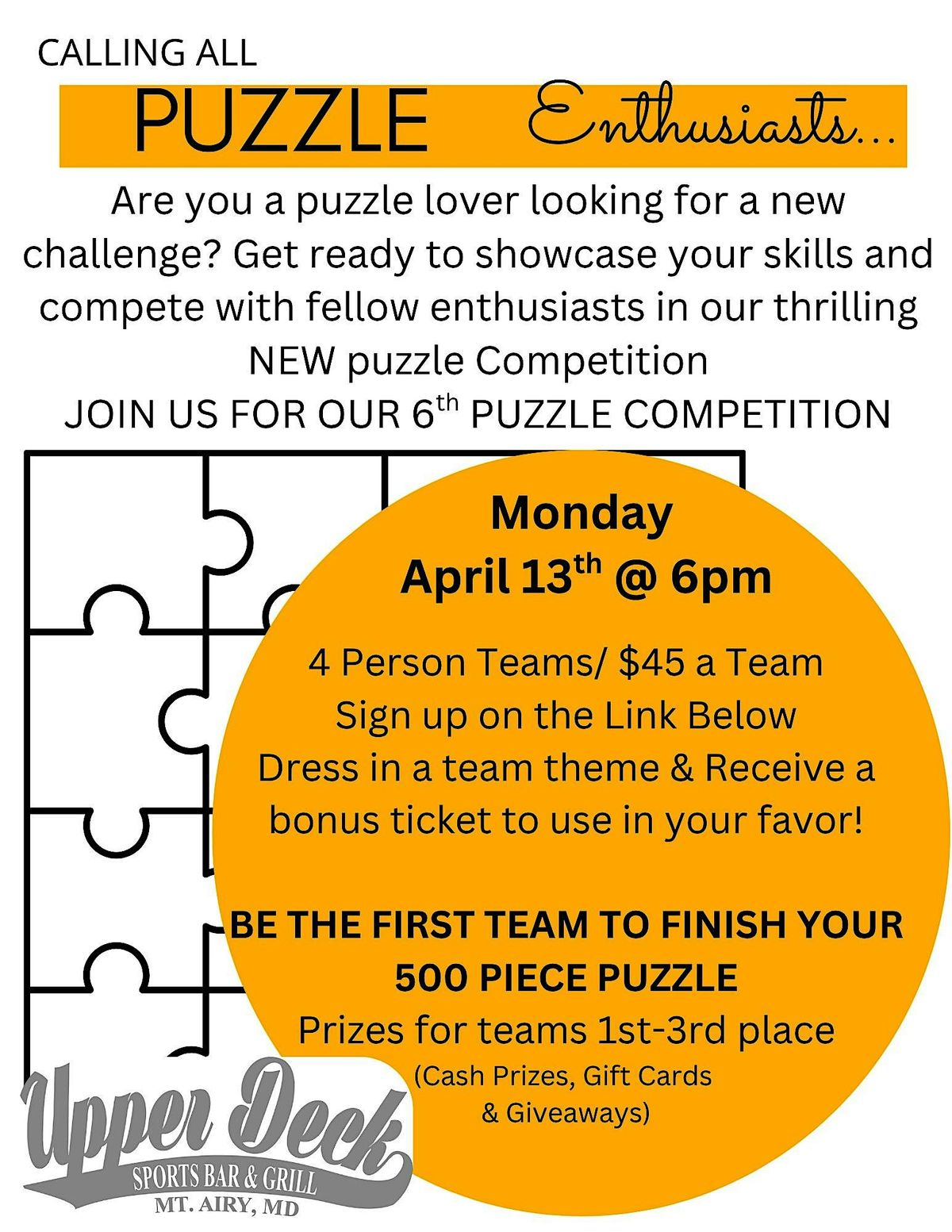 Puzzle nights are BACK! Join is for a fun Puzzle Competition on Monday, April 13th.