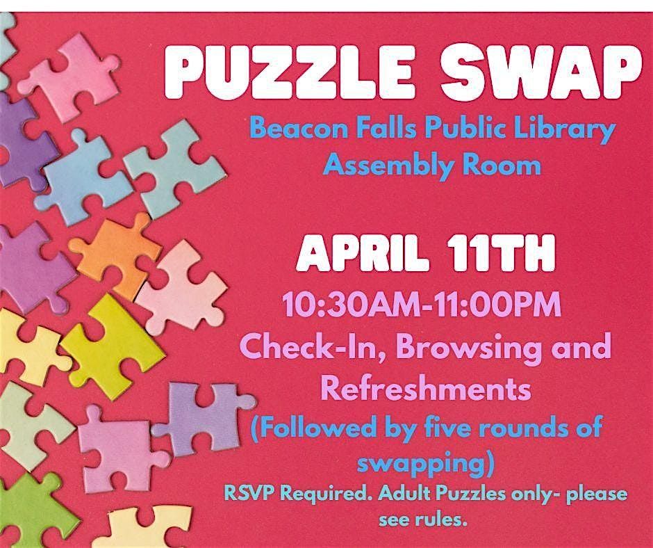 Swap your finished puzzles for new. RSVP Required. Please read the rules thoroughly.About this Event