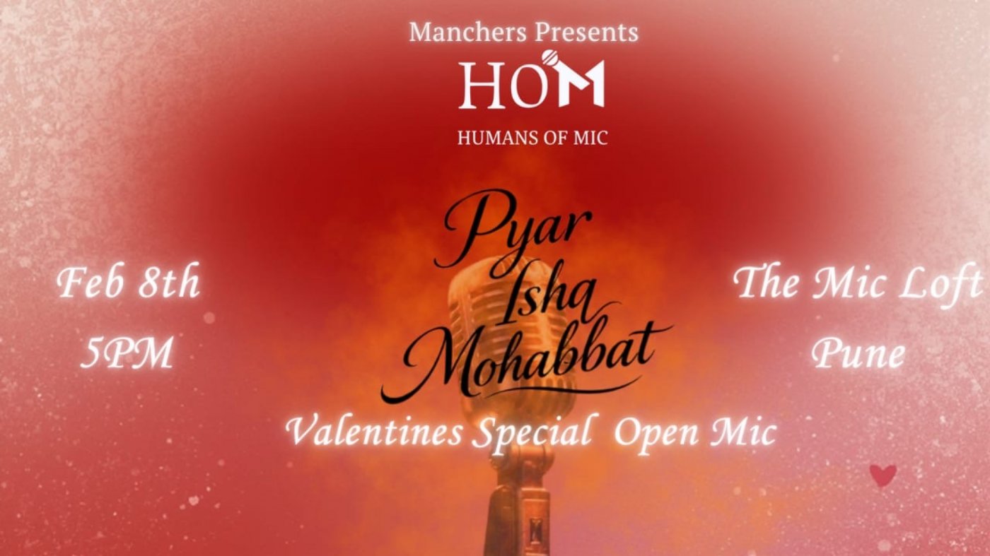 Manchers presents Humans of Mic, our Valentine’s Special Open Mic in Pune, hosted by Nisha, bringing her warmth and charm back to the stage.