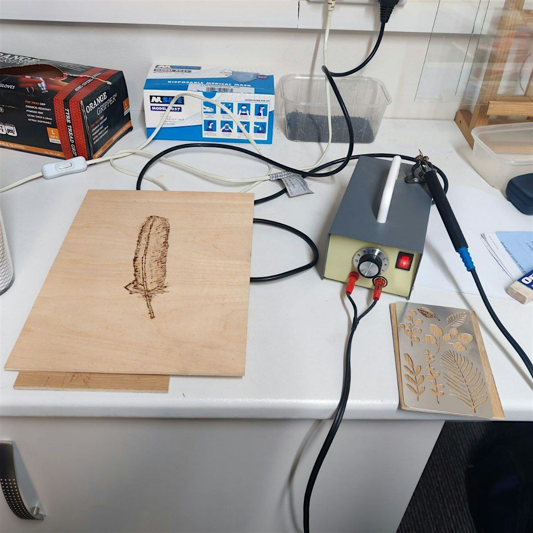Join shedders Billy and Ian in this hands-on Trade School session learning the art of decorating wood by burning designs on to a wooden surface using a heated tool. We 'll explore basic techniques to create lines, shading and patterns. You'll have the opportunity to design and make your own finished piece. Pre-booking is essential and remember to bring your Barter Item!