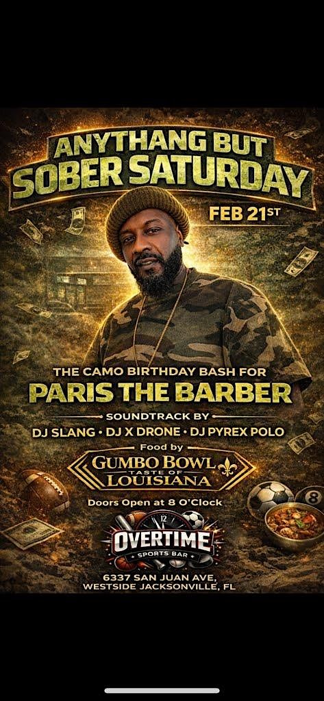 Pull up for the Camo Birthday Bash for Paris The Barber at Overtime Sports Bar.
