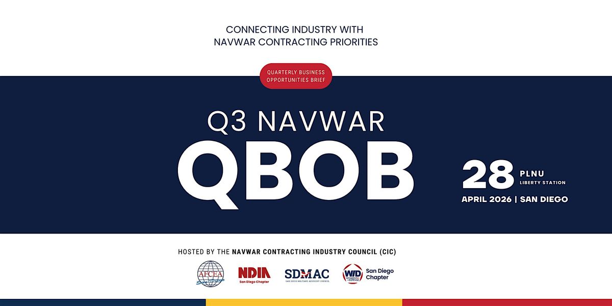 On behalf of the NAVWAR Contracts Industry Council (CIC), registration is now open for the Q3 2026 Quarterly Business Opportunities Brief (QBOB). The event will be held at the Liberty Station Conference Center, located at 2600 Laning Road, San Diego, CA 92106.