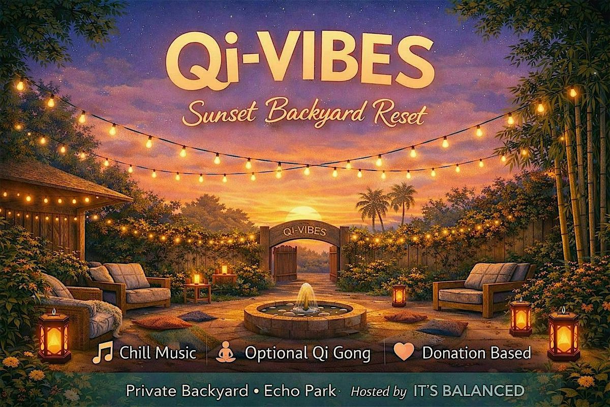 Join us in person for an unforgettable evening at Qi-Vibes! Set in the cozy backyard of Echo Park, this event is all about good energy, chill vibes, and making new friends as the sun sets. Whether you're here to relax, connect, or just soak in the atmosphere, there's a spot saved just for you. Come through, unwind, and let’s vibe together!