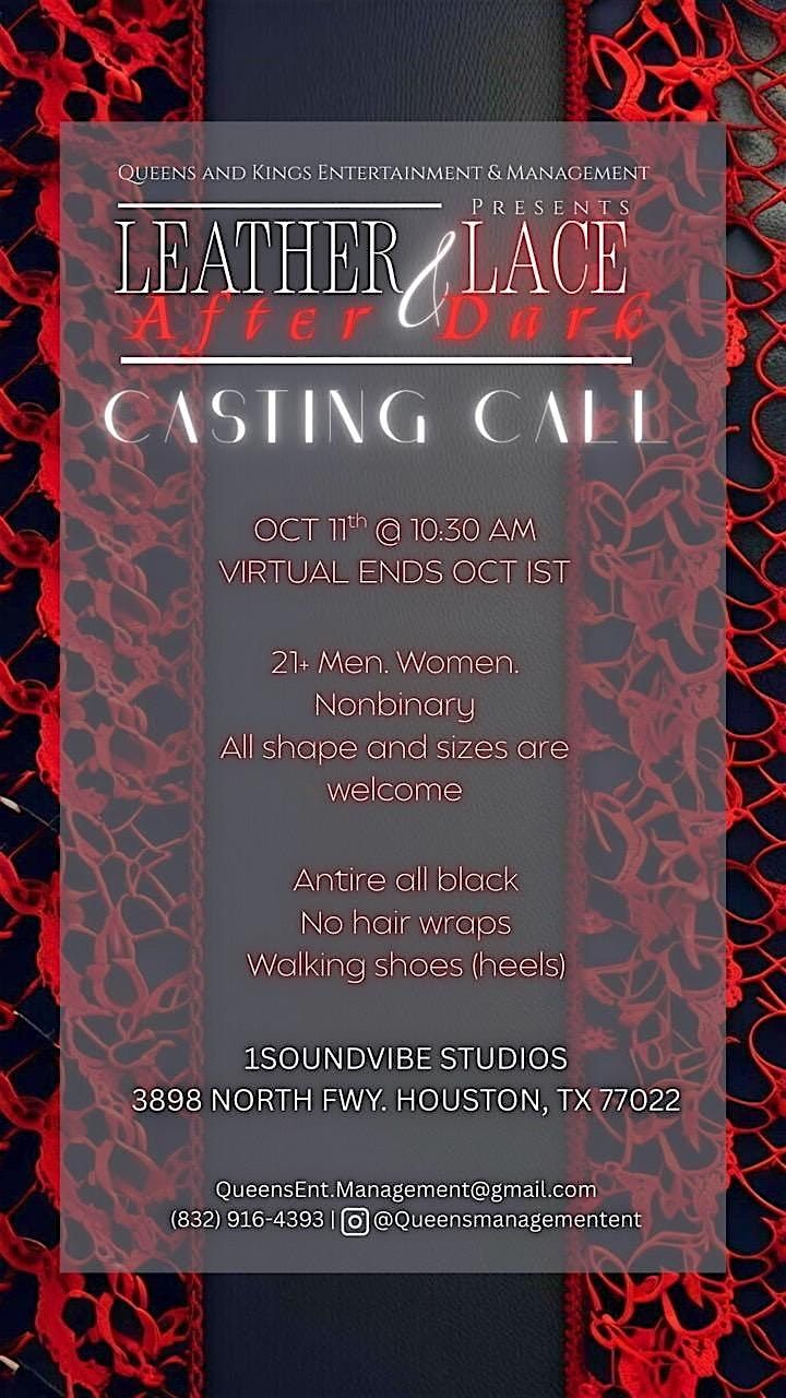Welcome to the QKEM 5th Annual Fibroids Awareness Show: Lace & Leather After Dark Casting Call! Join us at 1Soundvibe Connections LLC on October 11, 2025 at 10:30 AM (Central Time).