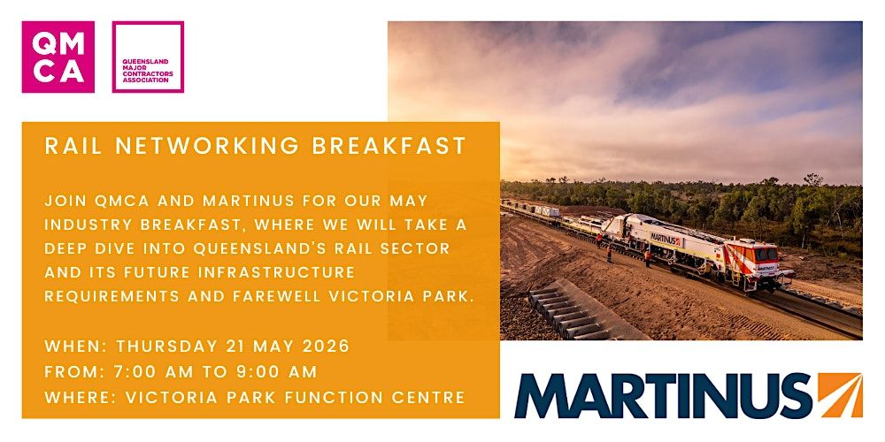 Join QMCA and event partner, Martinus, as we take a deep dive into Queensland’s substantial program of rail investment. With key projects such as Cross River Rail, Logan and Gold Coast Faster Rail, and the Direct Sunshine Coast Line, rail is a key enabler of economic productivity and urban mobility.