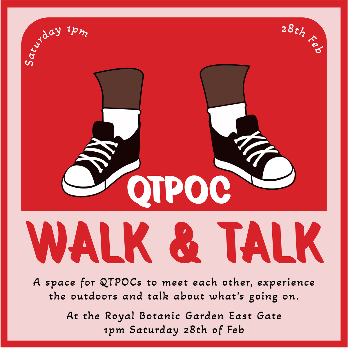 Join us for a relaxed walk and talk designed for QTPOC friends to connect and share. We’ll meet at East Gate Coffee Bar before heading out together. We kindly ask allies not to attend, as this is a safe space for Trans and Queer People of Colour.