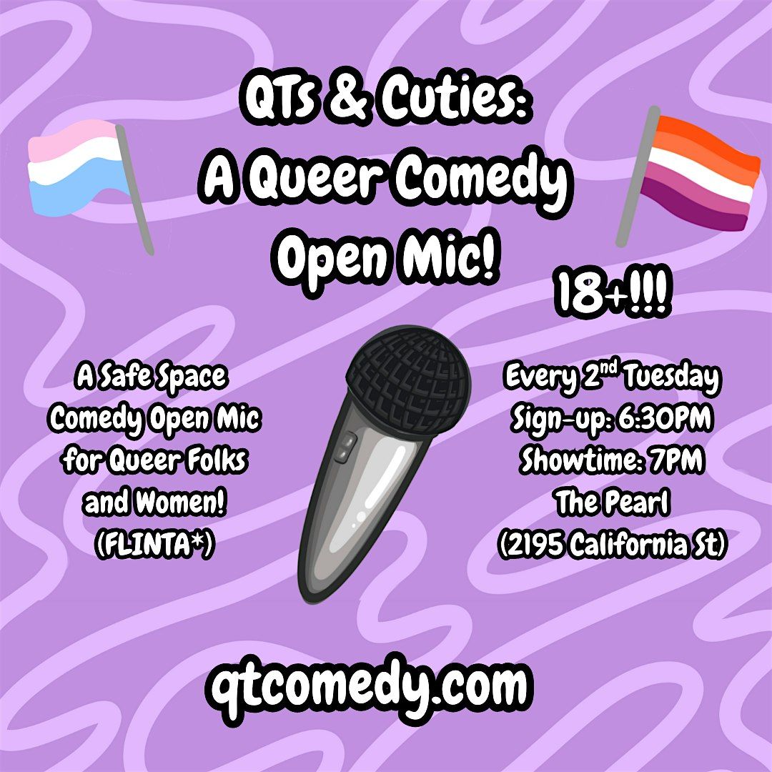 QTs & Cuties is a Comedy Open Mic Safe Space for those who identify as Queer, Trans, and/or women! During a night of laughs and love, we will also be working diligently to cultivate community, connection, and camaraderie!