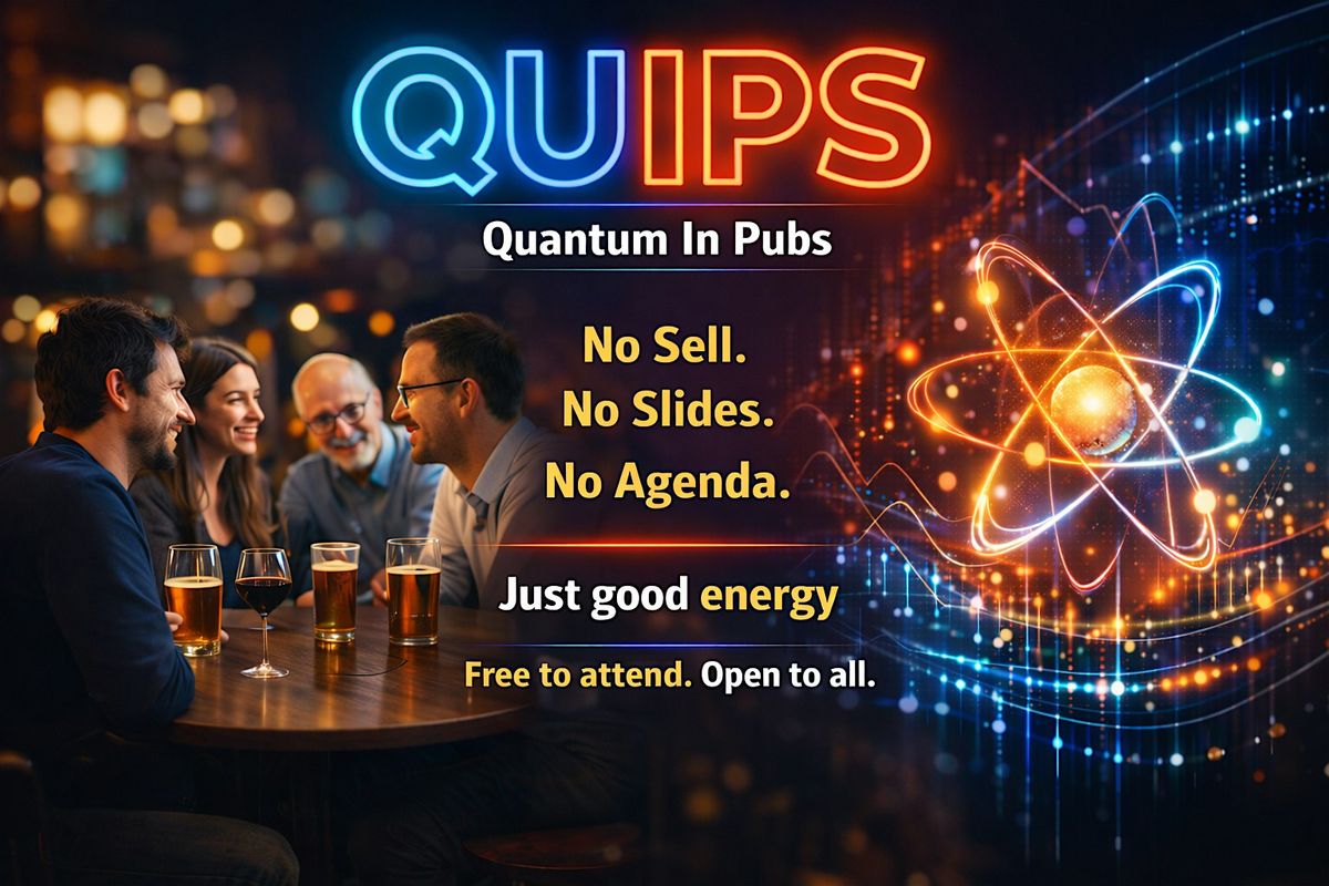 QUIPS (Quantum In Pubs) is a relaxed gathering for anyone curious about quantum technology — from scientists and engineers to founders, investors, policymakers and the simply intrigued.
