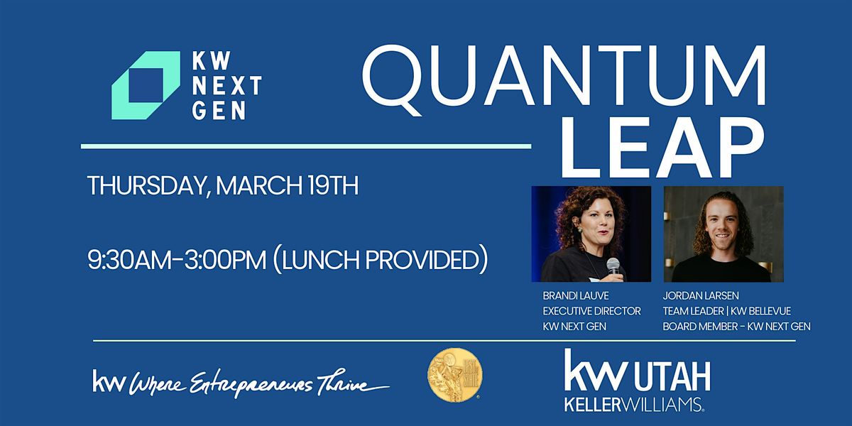 Quantum Leap original curriculum was written by Co-founder of Keller Williams, Gary Keller on how to live the biggest life possible. Brandi Lauve, Executive Director from KW Next Gen and Jordan Larsen, Team Leader of KW Bellevue and KW Next Gen Board Member will be leading this course. Audience: high school seniors, Young Adults Ages 18-30, Adults interested in becoming KW Next Gen Approved Instructors)