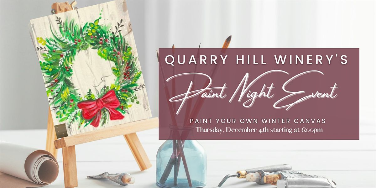 Join us at Quarry Hill Winery on Thursday, December 4th starting at 6:00pm for our Thankful Canvas Paint Night Event! Each person will be painting a winter wreath design canvas.