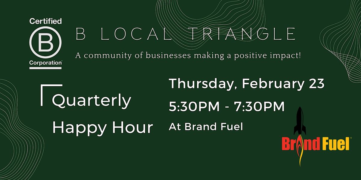 Join us for our first happy hour of 2023 hosted by our newest Certified B Corp in the Triangle – Brand Fuel. Celebrating 25 years in business, the Brand Fuel team is excited to get involved with our B Local community and make new B friends.