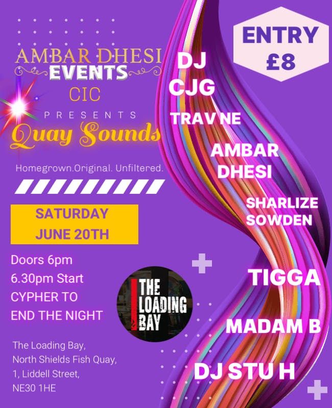 QUAY SOUNDS 🔥🎵Saturday 20th June | 6pm-LateHomegrown. Original. Unfiltered.Quay Sounds is a grassroots live music night spotlighting the North East’s original voices.From R&B and hip hop to liquid DnB and genre-blending sounds, they create space for local artists, real culture and community energy. Set on the Fish Quay right here at The Loading Bay, this is where underground sound meets the shoreline.Line up: Ambar Dhesi TravSharlize SowdenTIGGAMADAM BDJ CJG Cypher hosted by: DJ STU HDisclaimer: