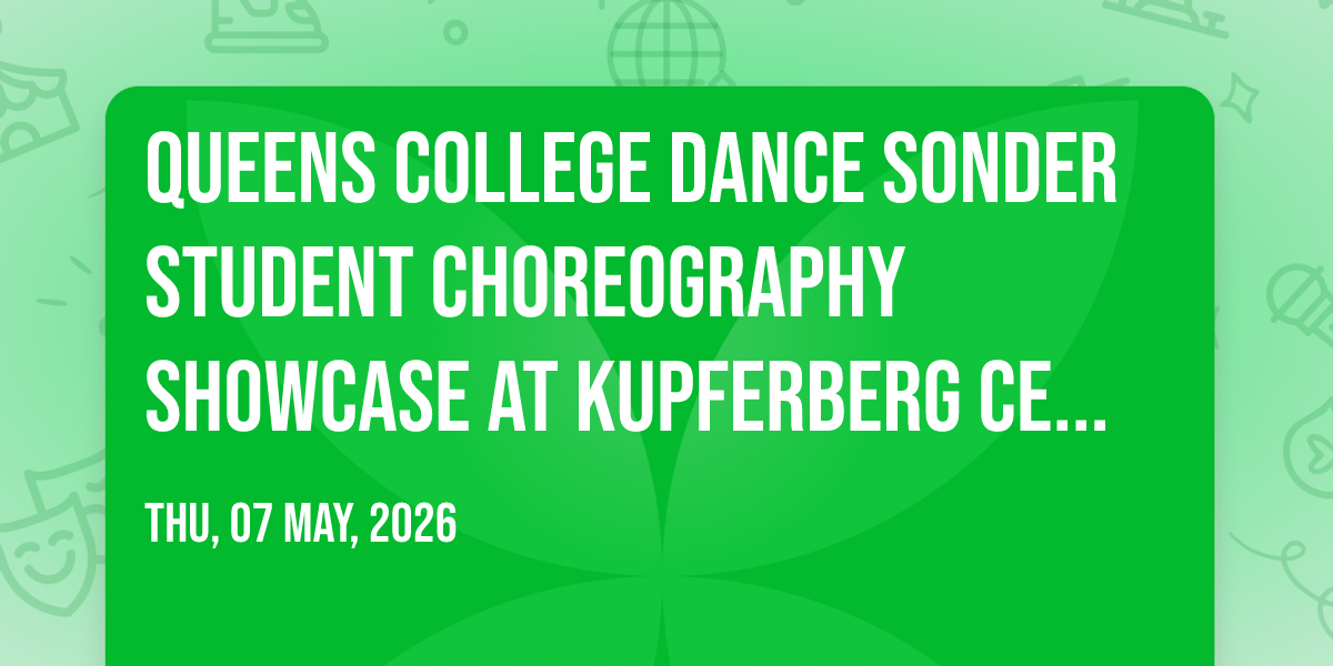 ✨ Experience the magic of Queens College Dance Sonder Student Choreography Showcase at Kupferberg Center - Goldstein Theatre, where moments become memories that last a lifetime! 🏛️ The iconic Kupferberg Center - Goldstein Theatre in Flushing, NY sets the perfect stage for an unforgettable celebration on May 7th, 2026 at 07:00 PM. 🌟 It's been a curated experience that brings together the best of entertainment and innovation, creating an atmosphere of wonder and excitement. From the moment you arrive, you'll be immersed in a world where the ordinary transforms into the extraordinary. 🎊 Book early to secure your place in what promises to be an event that will be talked about for years to come!