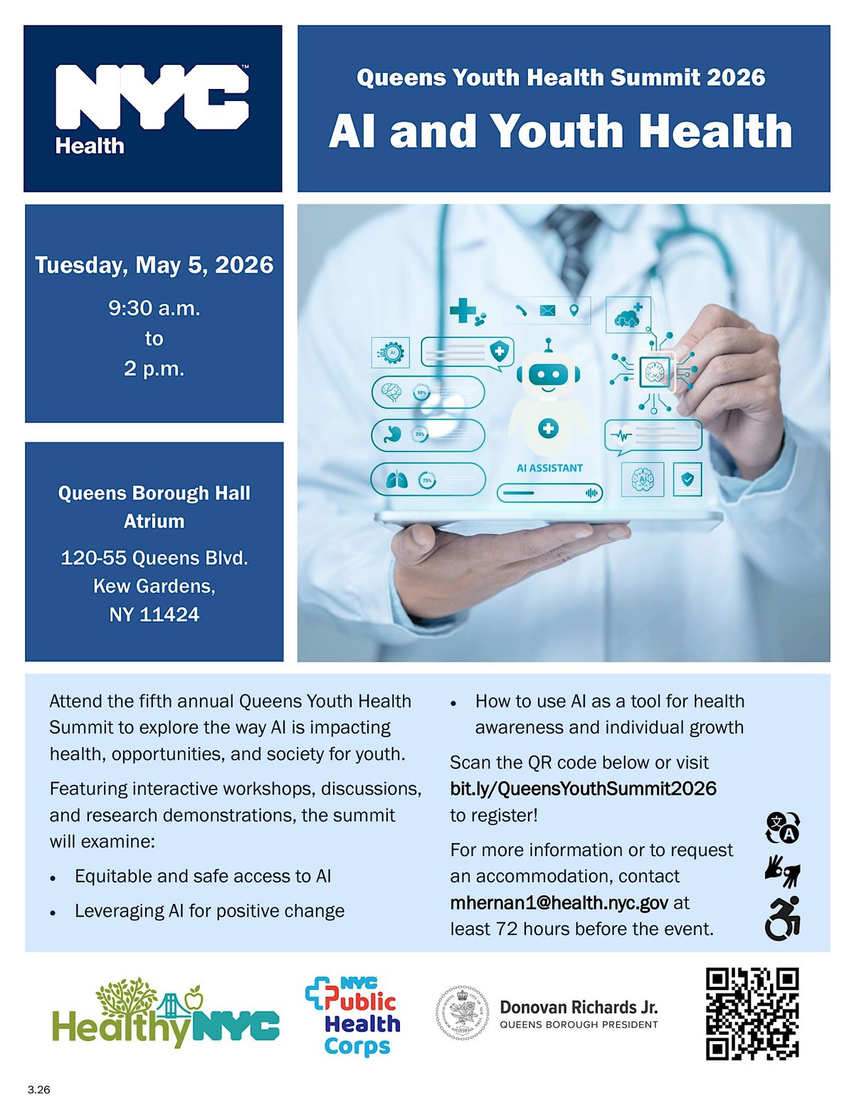 Attend the fifth annual Queens Youth Health Summit to explore the way AI is impacting health, opportunities, and society for youth.