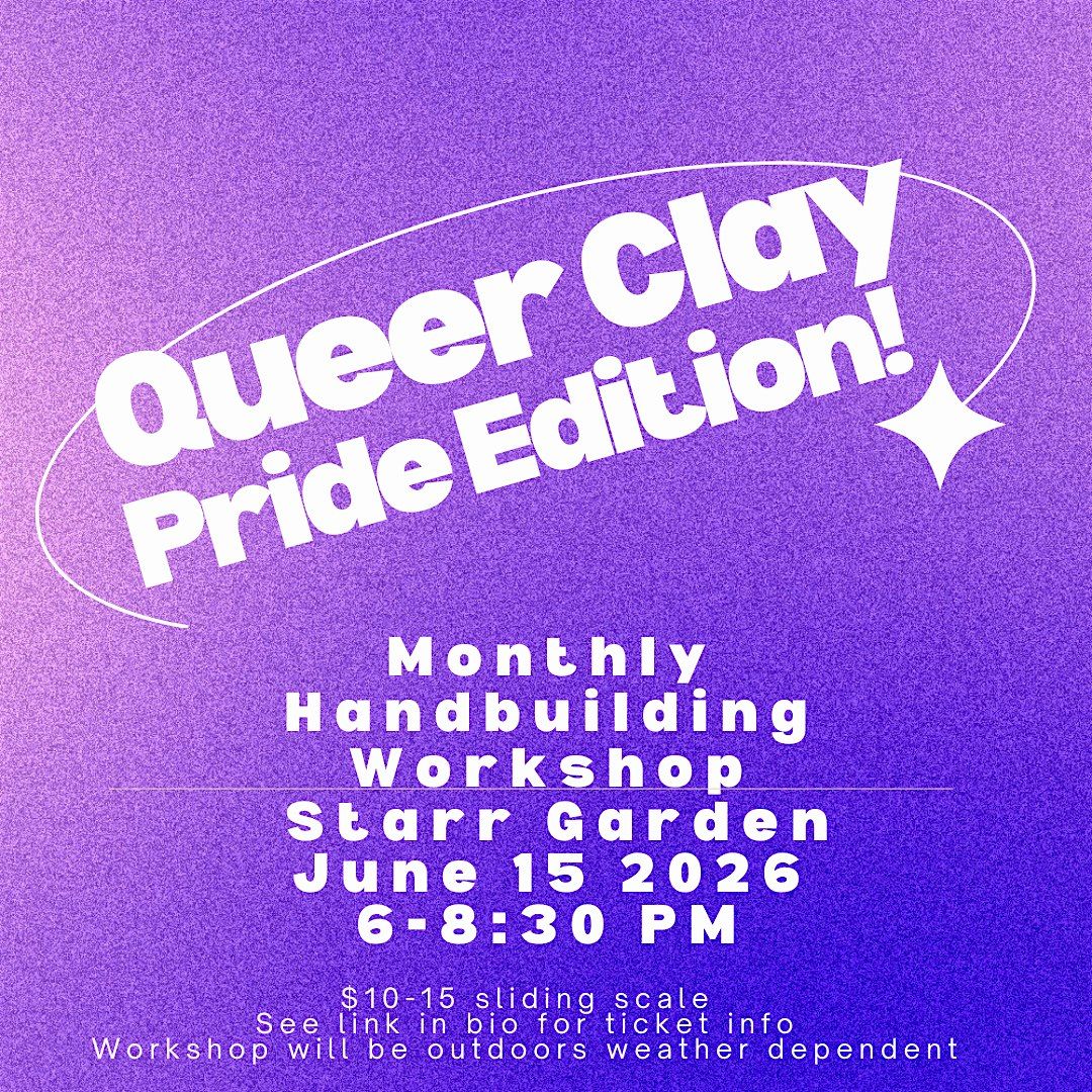 Please stay home if you aren't feeling well. Please note that all workshops between October and March will be held indoors with windows and the door to the room open for ventilation. Masks are encouraged at indoor queer clay events.