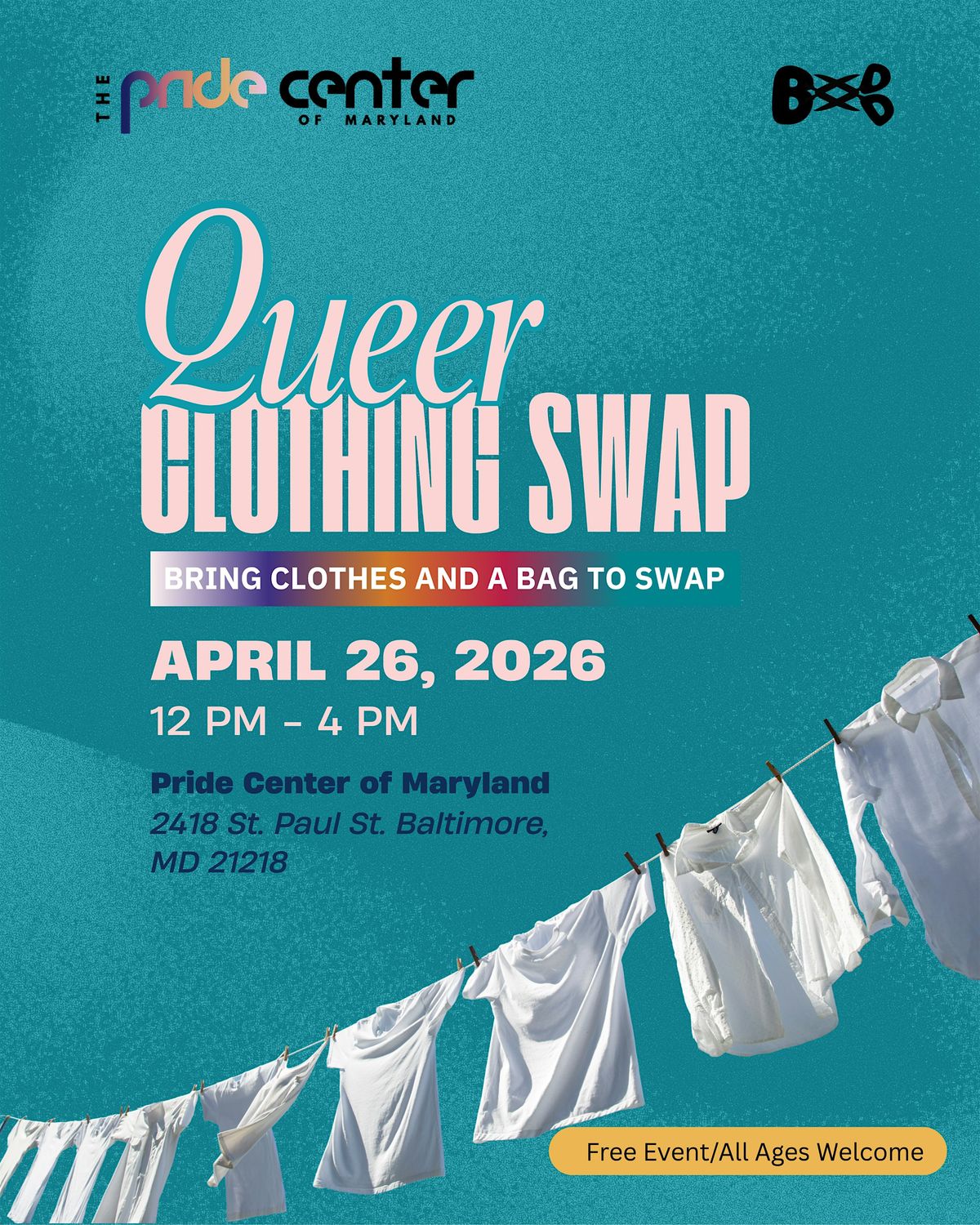 Bring your clothes and accessories to trade with your community! Hosted at the Pride Center of Maryland. Venue is fully accessible.About this Event