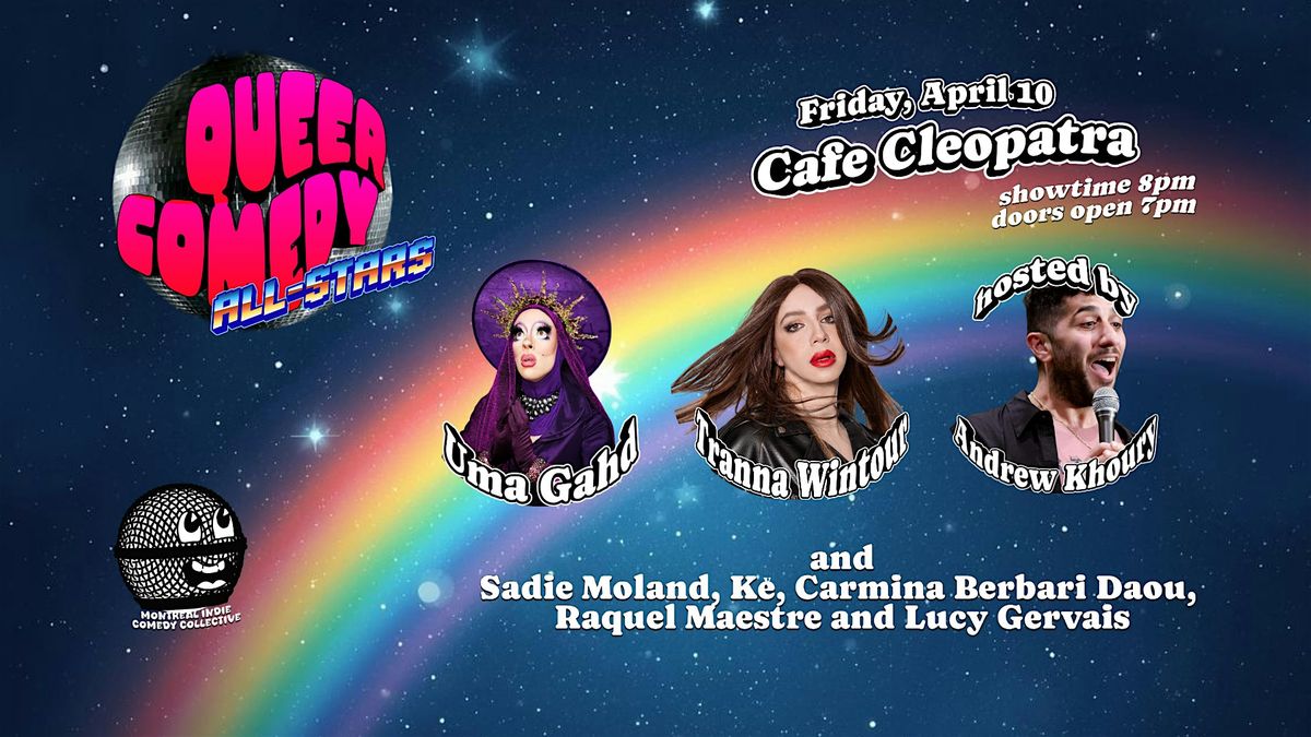 Hosted by Andrew Khoury (Just For Laughs) and featuring Uma Gahd (Canada's Drag Race, Edinburgh Fringe) and Tranna Wintour (The Traitors, Just For Laughs) with a stellar list of openers: Just For Laughs recording artists Kě and Lucy Gervais, as well as OFFJFL featured performers Carmina Berbari Daou, Sadie Moland and Raquel Maestre.
