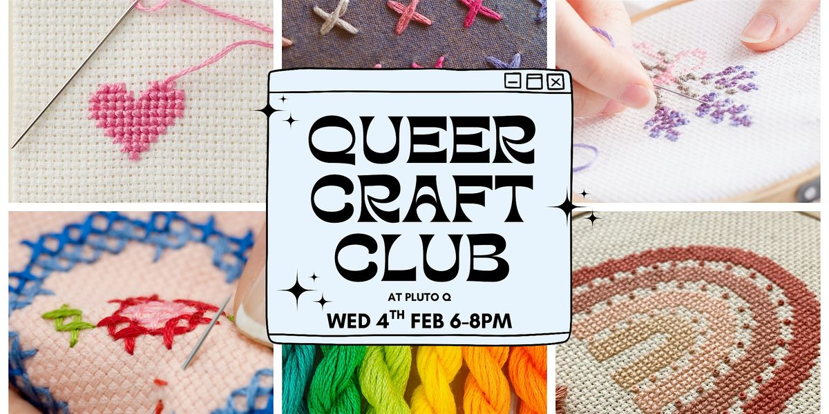A chill evening making cross stitch badges, for anyone who identifies as LGBT+.