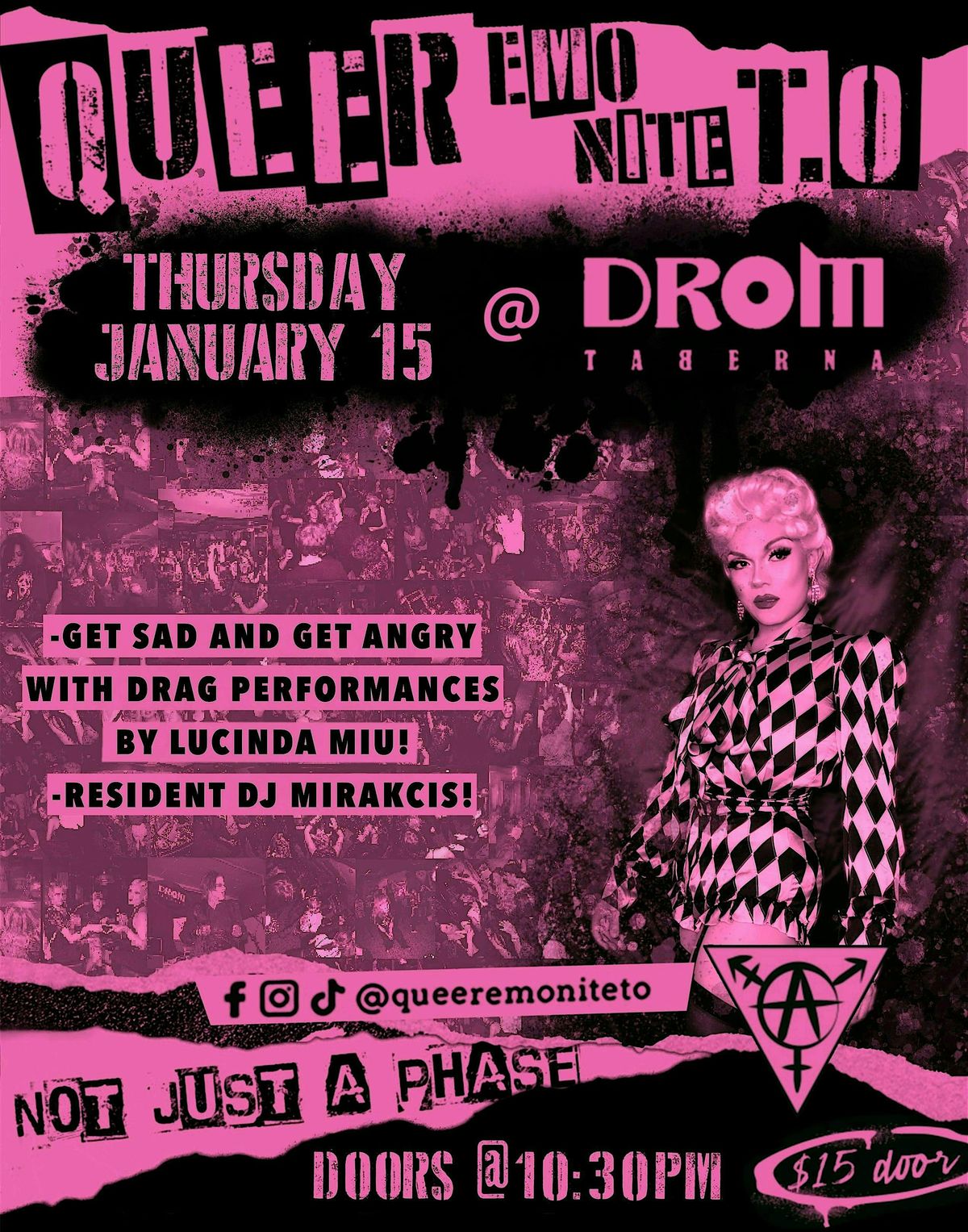 Come party with Queer Emo Nite TO at DROM Taberna! Get ready for a night filled with your favourite emo tunes, queer anthems, and of course, a drag show by the one and only Lucinda Miu!