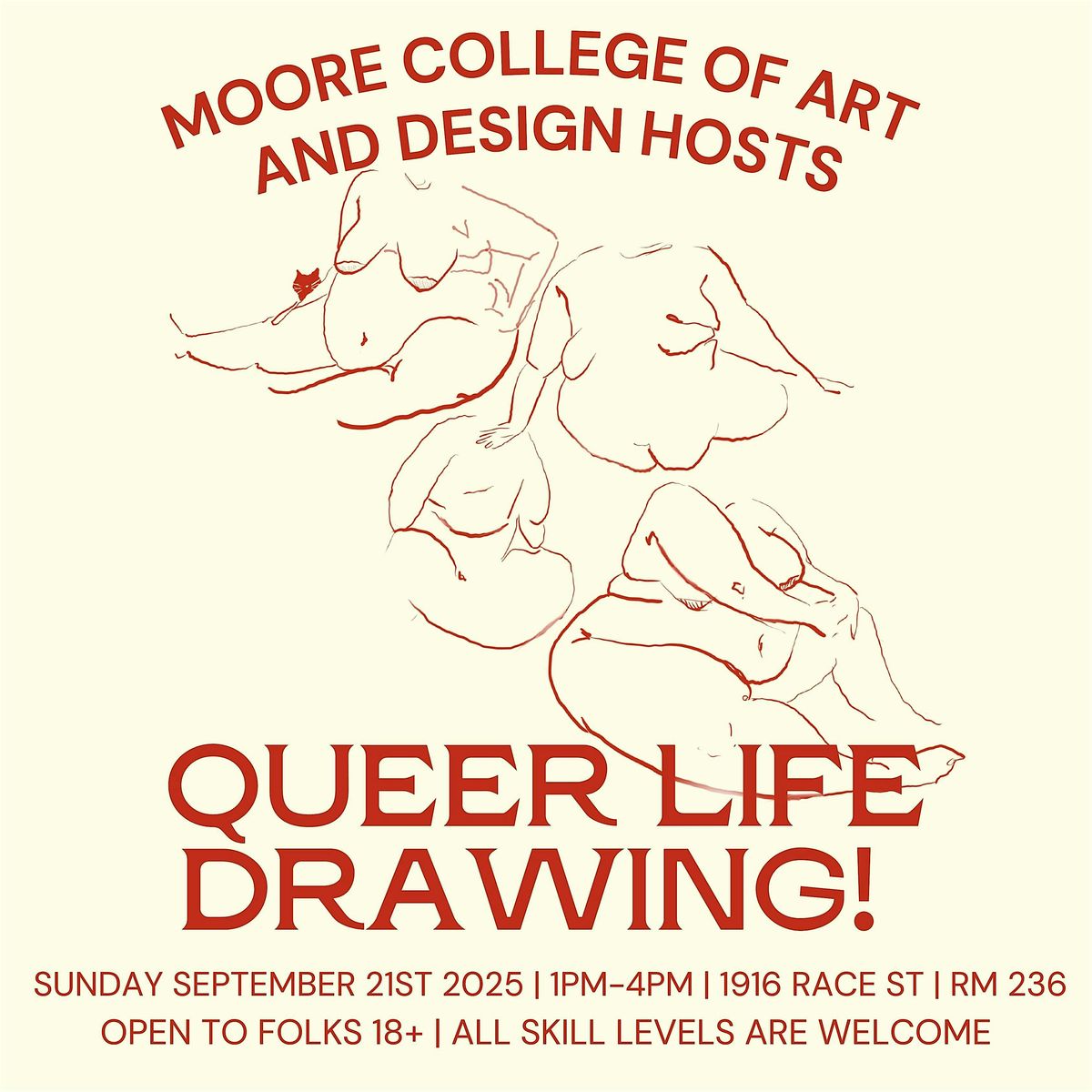 We will do a structured schedule with gesture drawings in the beginning and moving into longer poses as time goes on. This is not a queer only event but it is a queer space and we do seek to highlight queer trans poc and fat bodies! 100% of the ticket price goes to a mutual aid group in the Philadelphia area! Bring your favorite mediums and surfaces to work on and we’ll see you there!! Room 236 on the second floor.