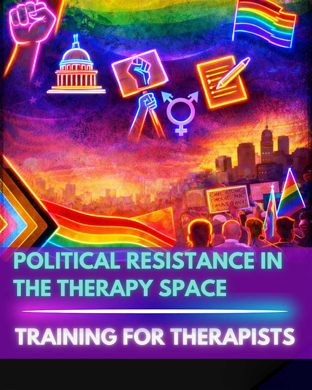 This is not 101 training. We assume you're already doing LGBTQ+ affirming work. This is about deepening your practice, caring for yourself, and recognizing that every session where we name injustice, validate impact, and support action is an act of political resistance.