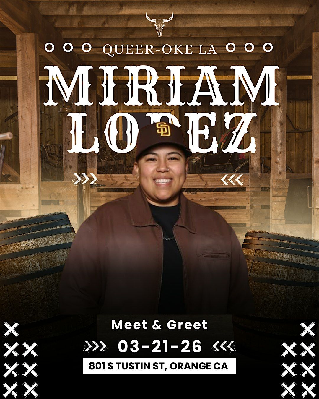 🍊Orange County! 🏳️🌈Queeroke LA🎤 is making a very special debut in your City Saturday March 21st! 2026! You do not want to miss this edition of QUEEROKE LA Noche Vaquera!! 🤠 We have a very special guest with us, Singer/Vocalist Miriam Lopez is here visitándonos desde Oregon! They will be hosting our night! Meet N Greet opportunities will be held before the night begins, followed by un Toro Mecanico, Tacos, Pozole and of course Orange County’s best Karaoke DJ “Chikiis” en los controles. Dont miss out on the collaboration of the year and the best voices of Queeroke!🌈