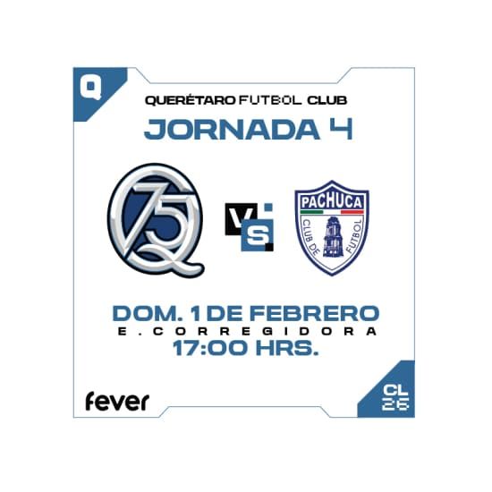 ¡Siente la pasión y vive la emoción! Disfruta de la atmósfera de un partido de fútbol del Querétaro FC, donde cada gol enciende a la afición. ¿Listo para las noches mágicas de la Liga MX? 🐓 Querétaro FC vs Pachuca ⚽ Boletos oficiales para la Jornada 4 de la Liga MX 📱 Acceso a boletos digitales en tu teléfono Información general 👤 Edad: para todas las edades (menores de 3 años entran gratis) 📌 Ubicación: Estadio Corregidora ❓ Puedes consultar aquí las preguntas frecuentes y sus respuestas